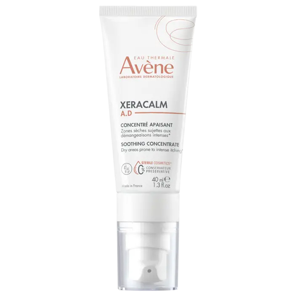 Το XeraCalm A.D Συμπυκνωμένο Καταπραϋντικό ανακουφίζει άμεσα τις ξηρές ζώνες, με τάση έντονου αισθήματος κνησμού και ατοπικού εκζέματος.