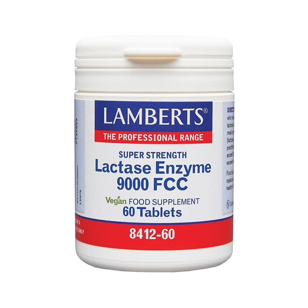 Το Lactase Enzyme 9000 FCC της Lamberts αποτελεί ένα υψηλής ισχύος συμπλήρωμα λακτάσης, το οποίο ανά ταμπλέτα παρέχει λακτάση ισοδύναμη με 9000 FCC (μονάδες του Food Chemical Codex).