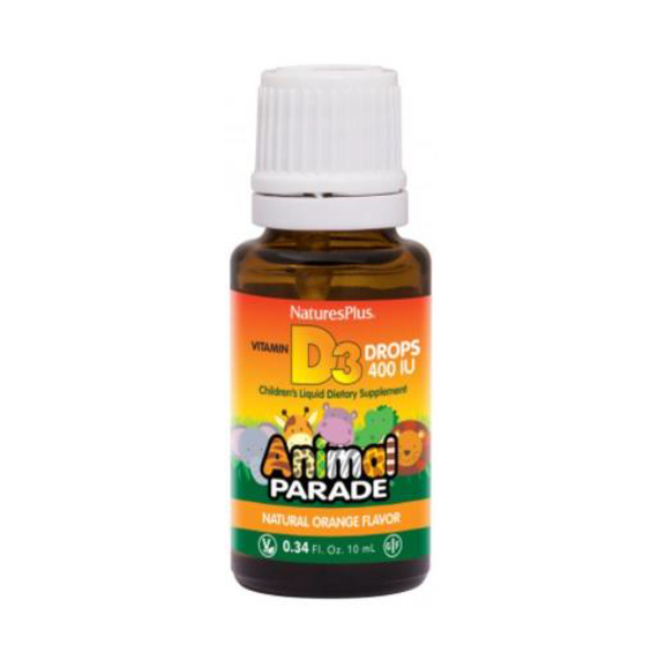 Το Natures Plus Animal Parade D3 400 IU Παιδική Φόρμουλα Ενίσχυσης του Ανοσοποιητικού Γεύση Πορτοκάλι Σταγόνες 10 ml προσφέρει την απαραίτητη βιταμίνη του ήλιου σε νόστιμη φυσική γεύση πορτοκάλι και σε εύκολη μορφή για κατανάλωση. Η εύκολα απορροφήσιμη D3 υποστηρίζει δυνατά οστά, ένα υγιές ανοσοποιητικό και αναπτυσσόμενα σώματα!