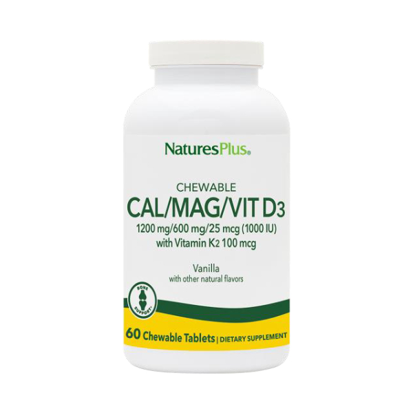 Natures Plus Ασβέστιο, Μαγνήσιο, D3, K2 Γεύση Βανίλια 60 Μασώμενες Ταμπλέτες