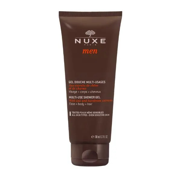 Το Nuxe Men Multi Use Shower Gel, συνδυάζει ξυλώδεις και πικάντικες νότες από φυσικά αιθέρια έλαια, σε ένα τζελ καθαρισμού για πρόσωπο, σώμα και μαλλιά.