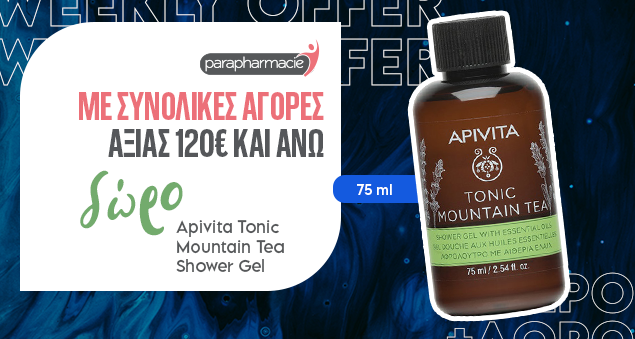 With total purchases worth €120 or more, Gift Apivita Tonic Mountain Tea Shower Gel 75ml!